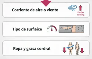 Los cuerpos sumergidos en agua pierden calor mucho más rápido que en aire, acelerando la caída de temperatura y modificando la estimación postmortem.
