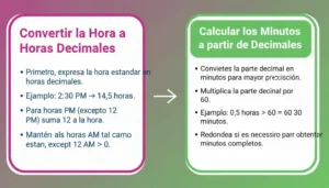 • Colocación Incorrecta de los Minutos: Los minutos permanecen igual y no deben convertirse en horas.
