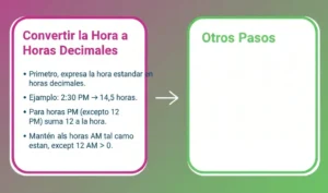 • Ejemplo: 2:30 PM → 14,5 horas.