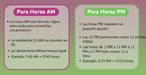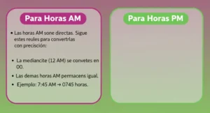 Convertir la hora estándar a hora militar de forma manual es sencillo una vez que entiendes las reglas básicas. A continuación, una guía paso a paso para horas AM y PM.