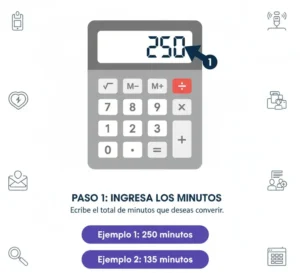 Escribe la cantidad exacta de minutos que deseas convertir. Así aseguras resultados correctos.