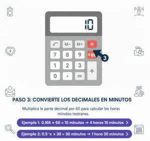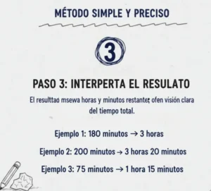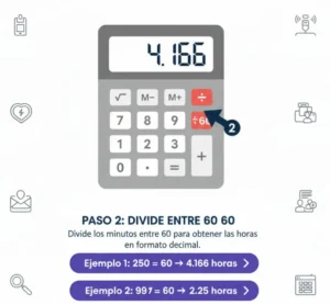 A veces no tendrás acceso a una calculadora ni a internet. En esos casos, saber cómo convertir minutos en horas manualmente resulta muy útil. Sigue estos pasos para un método simple y preciso.